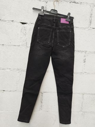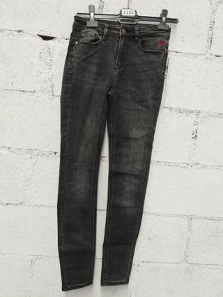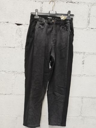 Pantalón vaquero de color negro de la marca Desigual con estampado de cuadrados. Es de talla S