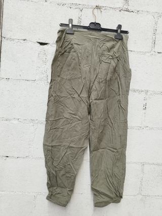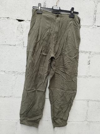 Pantalón de estilo informal y diseño único. - Color verde. - Cintura con cierre de botón. - Bolsillos laterales.