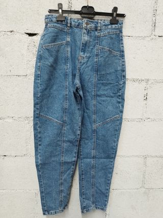 Pantalón vaquero de corte desigual. - Diseño moderno con costuras marcadas. - Bolsillos frontales. - Pierna recta.