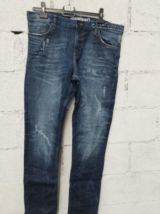 Pantalón vaquero de la marca Desigual, con un diseño único. - Etiqueta Exotic Jeans by Desigual en color dorado. - Tejido vaquero azul. Talla 27