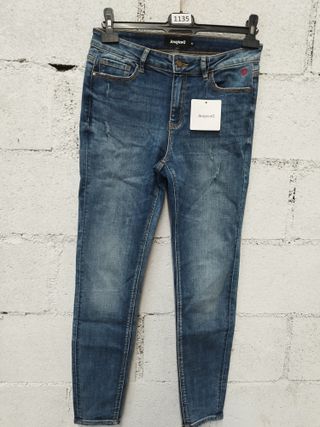 Pantalón vaquero de la marca Desigual. - Diseño desgastado. - Corte ajustado. - Detalle de corazón bordado en el bolsillo.