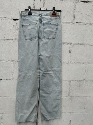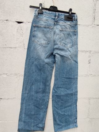 Pantalón vaquero de corte ancho con detalles brillantes. - Diseño a rayas verticales. - Tejido vaquero con acabado metalizado.