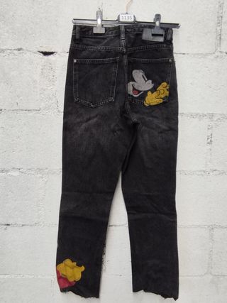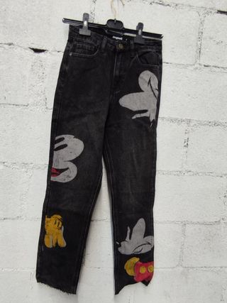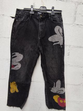 Pantalón vaquero con estampado de Mickey Mouse. - Diseño divertido y original. - Estampado de Mickey Mouse en varias partes. - Corte moderno.