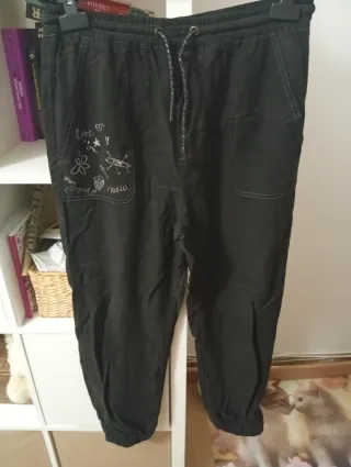 Pantalón de la marca Desigual, nuevo con sus etiquetas. - Diseño moderno y cómodo. - Cintura con detalles bordados. - Bajos elásticos. - Cierre de botón y cremallera.