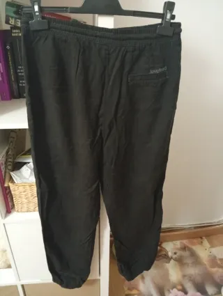 Pantalón de la marca Desigual. - Estilo: 20WWPK. - Color: Negro. - Talla: M (EUR/MEX/CH 32 170/88A). - Instrucciones de lavado: Lavar a máquina a 30°C, no usar lejía, no secar en secadora, planchar a baja temperatura por el revés, no lavar en seco.