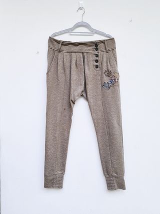 Pantalón DESIGUAL Talla XL beige apliques bordado