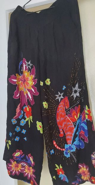 Precioso pantalon largo estilo boho de la marca Desigual. Es de color multicolor con un estampado llamativo. Es talla 14 años de niña o S de adulta. Más ropa de desigual ,en mi perfil. - Talla S (equivalente a 34 o 36. - Diseño único y alegre - Tejido ligero y fluido