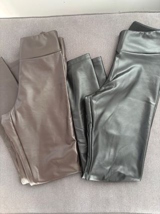 Leggings de efecto piel de Calzedonia. - Color marrón y gris. - Diseño moderno y elegante. Estan casi nuevos. Talla S. Vendo los dos juntos por 35, o por separado 20 € cada uno.