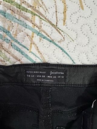 Pantalones de corte recto con un acabado que imita la piel. Tipo skinny,pone que es 42 pero se siente como un 39/40 - Cintura alta. - Cierre de cremallera y botón. - Bolsillos delanteros y traseros.