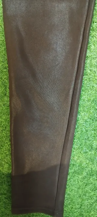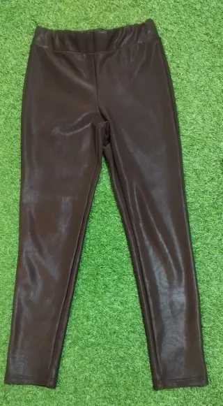 Pantalón de efecto piel en color marrón. Son cómodos y versátiles. - Cintura elástica. - Tejido con acabado brillante.