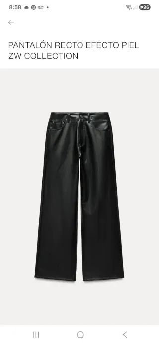 Pantalón Stradivarius, ligeramente acampanado, efecto cuero. Corte recto. Buen estado