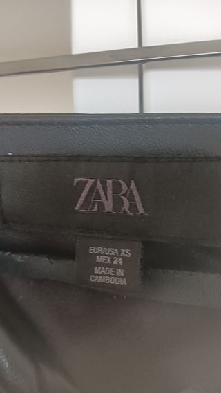 Pantalón de efecto piel de Zara. - Diseño de cintura alta. - Bolsillos traseros. - Cremallera lateral.