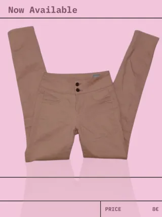 Pantalones ajustados, push-up, tipo leggings color beige. Cintura de goma. Cintura alta. Con abertura en la base. Talla M pequeña. Nuevos con etiqueta. Lefties. Medidas: 34 cm cintura, 40cm cadera y 110cm largo total. Para cualquier cosa no dudéis en consultar☺️ Descuento por lote de artículos. Más en mi perfil!
