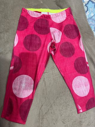 Leggings deportivos de la marca Reebok con un divertido estampado de lunares. - Diseño en color rosa y burdeos. - Cintura elástica para mayor comodidad. - Largo hasta la rodilla.