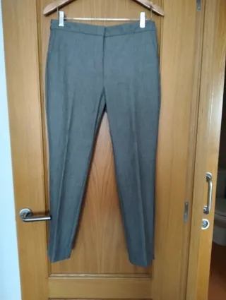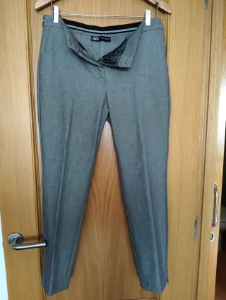 Pantalón de vestir de la marca ZARA en color gris. Largo 90 cm. Prácticamente nuevo. - Diseño elegante y versátil. - Corte recto. - Cierre de cremallera y botón.