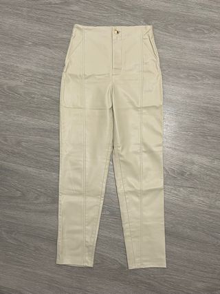 Pantalones de mujer en cuero sintético, talla XS, en excelente estado. Usados muy poco, casi como nuevos. Ideales para looks casual o más arreglados, cómodos y a la moda.