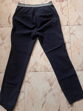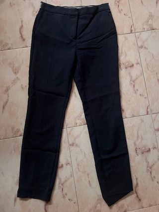 Bonitos pantalones de la marca Zara. Son de color azul marino y estan en buen estado. - Pack de 2 pantalones. - Color azul marino oscuro. - Tejido liso y tipo pinza - Talla 42