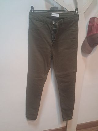 Pantalón elástico zara talla 40 verde militar pequeño descosido en el bolsillo de atrás