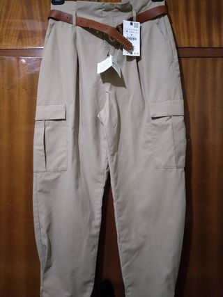 Pantalones de estilo cargo de Zara, disponibles en dos colores. Uno 15 euros. Los dos 20 euros. - Diseño con múltiples bolsillos. - Cintura con trabillas para cinturón.