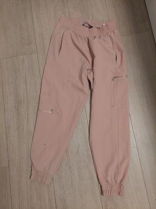 Pantalón de la marca Zara en color rosa, talla M. Confeccionado en España. - Cintura elástica con cordón. - Diseño moderno y cómodo. - Ideal para uso casual.