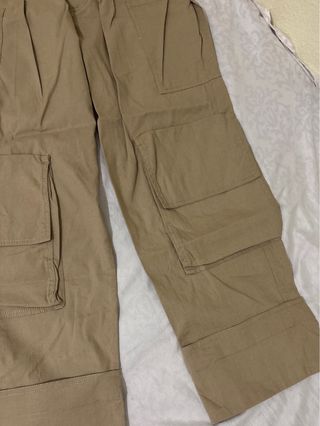 Pantalón cargo de Zara en color beige, talla S (equivalente a 36 o 8). Está en muy buen estado, tan solo se ha usado en 2 ocasiones. - Diseño cargo. - Tejido suave.