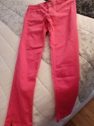 jeans skinny rosas de zara, talla 40, con cremalleras en los bajos. como nuevo.