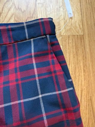Leggings de cuadros de Zara con detalles de rayas laterales. - Diseño de cuadros clásico. - Raya lateral en negro, blanco y burdeos. Están en perfecto estado.