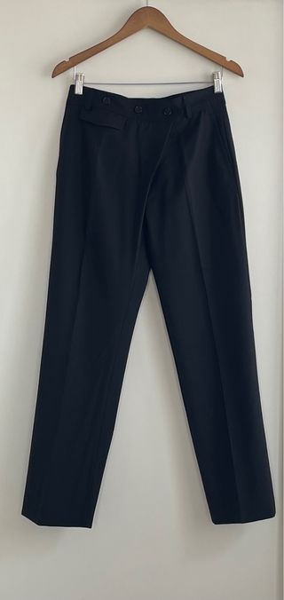 High waist trousers made of a wool blend. Front flap pocket. Asymmetric front zip and button fastening. It’s a big XS. ( XS-S ) Pantalón de vestir de la marca Zara. - Diseño elegante. - Cierre de botones.