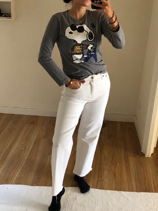 pantalón blanco de Zara - Pantalón vaquero de tiro alto.