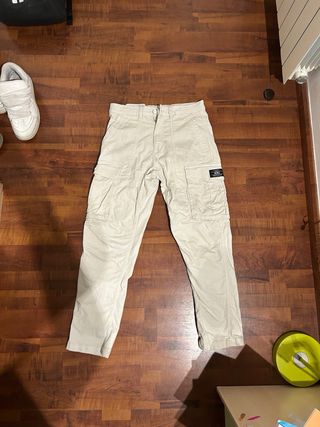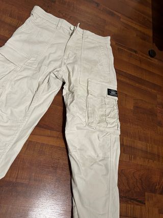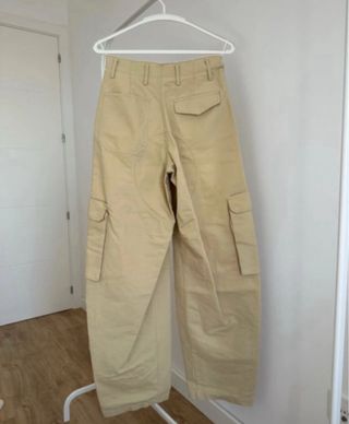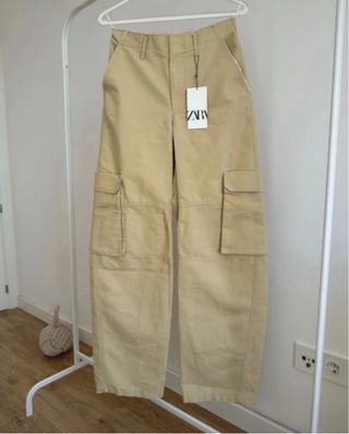 Pantalón cargo de la marca Zara en color beige. Diseño moderno y funcional. - Bolsillos laterales amplios. - Cierre de botón y cremallera. - Tejido resistente.