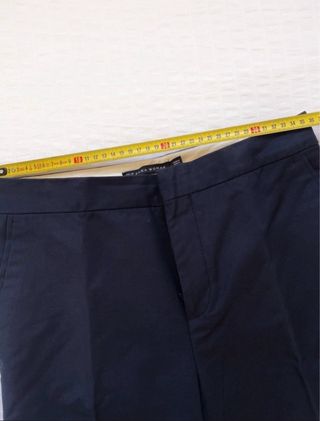 Pantalón de vestir de Zara en color azul marino. - Corte recto. - Cierre con cremallera y botón. - Bolsillos laterales y traseros como nuevo talla S