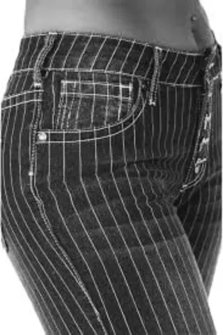 Pantalón de la marca Zara con un diseño de rayas verticales. - Diseño a rayas blancas sobre fondo negro. - Cintura alta. - Cierre de cremallera y botones.
