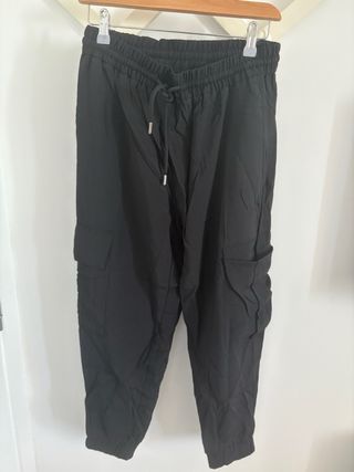Pantalones tipo cargo de Zara en color negro. Cuentan con cintura elástica y cordón ajustable. - Bolsillos laterales. - Diseño moderno y cómodo.