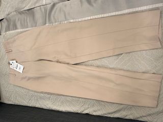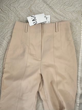 Pantalones de vestir de Zara en color beige. Diseño elegante y versátil. - Cintura con trabillas. - Bolsillos delanteros. - Bolsillo trasero de ojal.