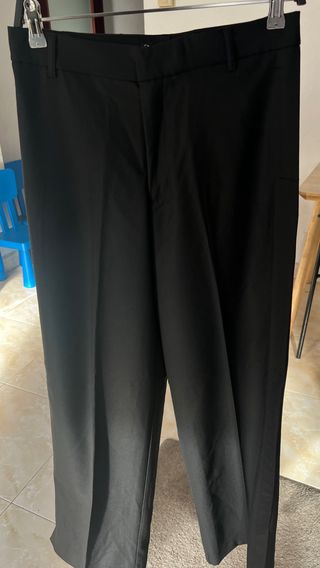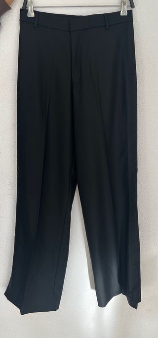Pantalones de vestir negros de la marca Zara en talla S. Totalmente nuevos. - Corte recto. - Cierre con cremallera y botón. - Dos bolsillos laterales. - Trabillas para cinturón.