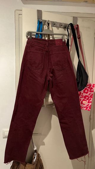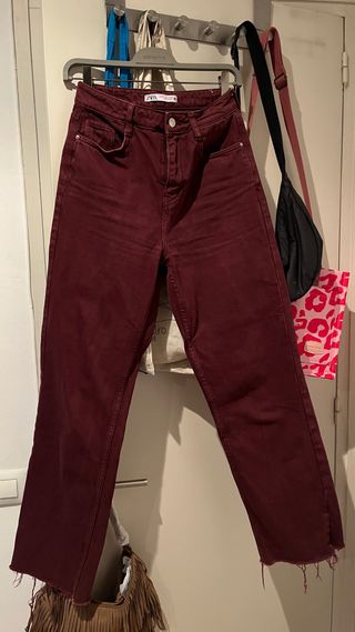 Pantalón de corte ancho de la marca Zara. - Color burdeos. - Diseño de pierna ancha. - Bajo deshilachado. Tienen muy poco uso, son bastante cómodos
