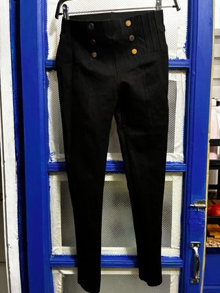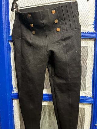 Leggings de Zara con un diseño elegante y detalles que marcan la diferencia. - Cintura alta con pliegues. - Cierre frontal con botones dorados. - Corte ajustado.
