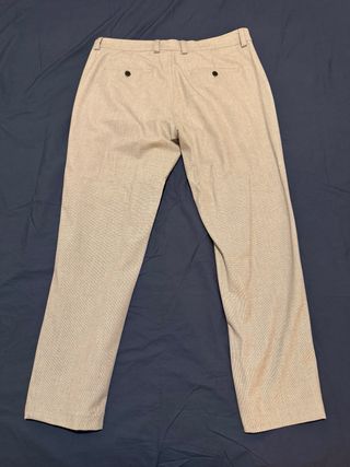 Pantalones de vestir de la marca Zara en color beige. Ideales para eventos formales o graduaciones. Usado una en una ocasion. - Corte recto. - Tejido con textura sutil. - Cierre de cremallera y botón.