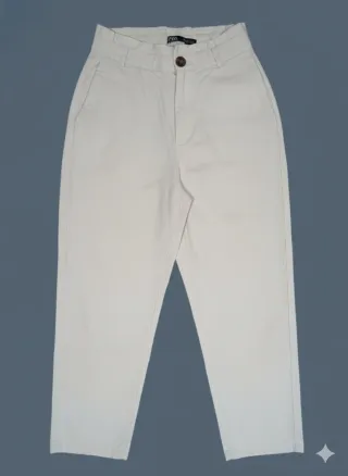 Pantalón de la marca Zara. Diseño moderno y versátil. - Corte recto. - Tejido cómodo. - Color neutro.