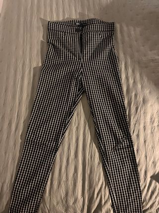 Leggings de ZARA con estampado de cuadros. - Diseño de tiro alto. - Patrón de cuadros blancos y negros.