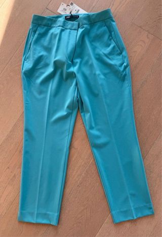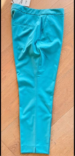 Pantalones de vestir de la marca Zara en un llamativo color teal. Perfectos para un look elegante. - - Bolsillos delanteros. - Abertura en el baja