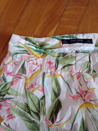 Pantalón palazzo de Zara con un llamativo estampado floral. - Diseño de pierna ancha. - Cintura elástica. - Tejido ligero y fluido.