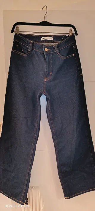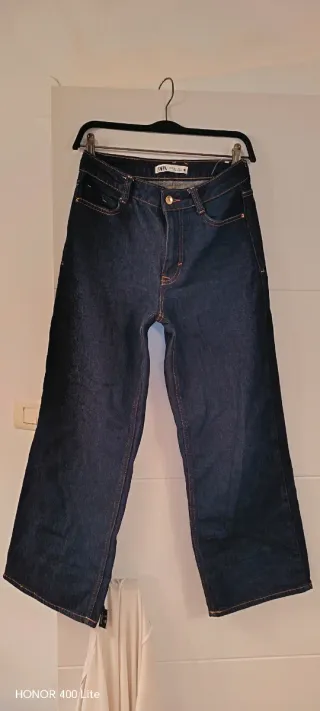 Pantalón vaquero de corte culotte de Zara. - Tono azul oscuro. - Costuras en contraste. - Cintura alta.