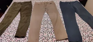 Lote de 2 pantalones pitillo de Stradivarius y 1 de Zara. Vienen en tres colores diferentes para combinar. Aunque uno pone talla 34, es del tamaño de los otros. - Pantalón rojo. - Pantalón azul. - Pantalón marrón.