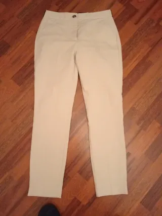 Pantalón estilo chino para chica. —Marca: Zara —Talla: 38. —Color: beige. —Bolsillos delanteros y traseros. —Cierre de botón y cremallera.