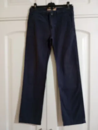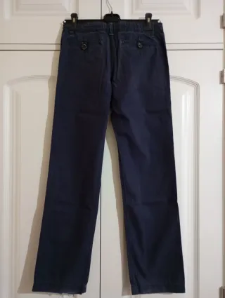 Pantalones elegantes de color azul marino, talla S. Son ideales para cualquier ocasión. - Corte recto. - Tejido de calidad. Cintura 33 cm Cadera 36