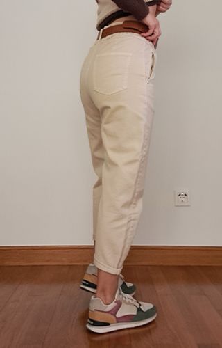Pantalones vaqueros de Zara en color beige. Son de tiro alto y corte recto. Están impecables, sin señales de uso. - Corte recto - Tiro alto - 1 pantalón