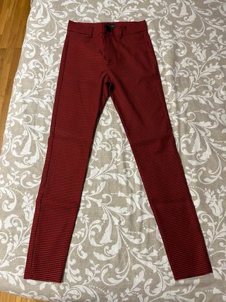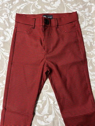 Pantalón-leggings cuadros negros y rojos de Zara, talla S.