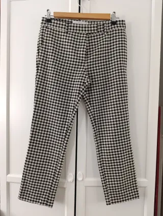 Talla S, Pantalón hasta el tobillo con un clásico estampado de cuadros, ideal para combinar con cualquier prenda. Buen estado - Diseño de cuadros blancos y negros. - Corte recto y bolsillos laterales