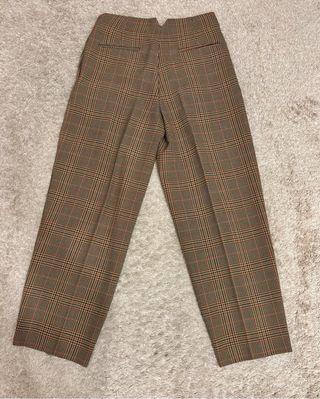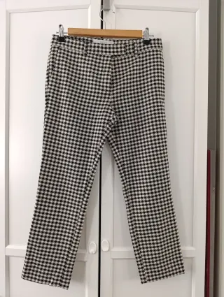 Pantalón de vestir de Zara, con estampado de cuadro clásico en tonos neutros, muy elegante y atemporal. Corte recto ligeramente entallado que estiliza la figura y resulta cómodo para el día a día con cintura trasera elástica. 🔹 Características: • Marca: Zara • Talla: 40 • Estampado: cuadro clásico • Tejido agradable y con buena caída • Ideal para looks de oficina, reuniones o estilismos más arreglados Una prenda versátil y fácil de combinar tanto con camisas como con jerseys o blazers. Se encuentra en muy buen estado.